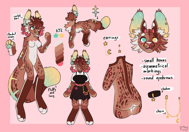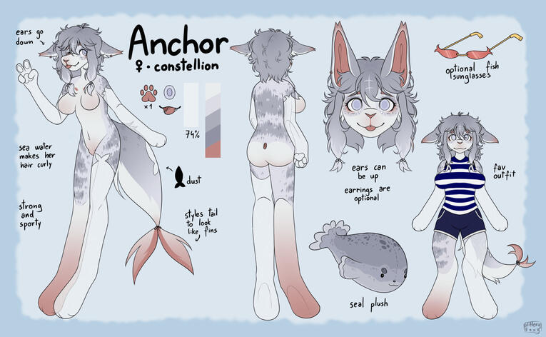 customs will always include a full (anthro or feral), chibi with clothes/accessories(anthro or feral), and color pallette. More can be added (more chibis, headshots, etc) and i tend to be pretty flexible with prices, just remember price can be higher or lower based on what i include in the sheet